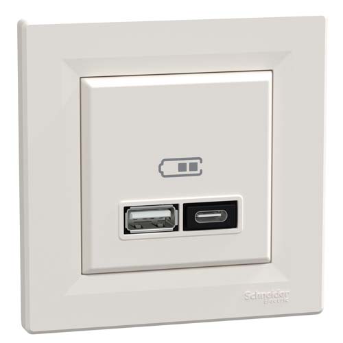 SE Dvostruki USB punjač Asfora tip A+C 21W kompletan proizvod krem