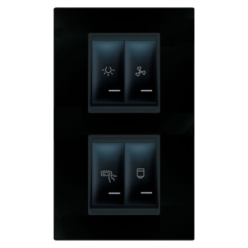 EXPERIENCE Set sklopki za kupatilo 4x16AX 250V~ sa indikacijom vertik. univerzalni (svetlo ventil. grejalica bojler) crni soft
