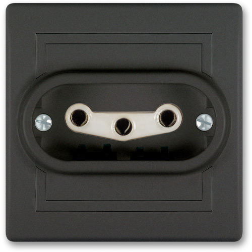 PRESTIGE Priključnica dvopolna sa porcelanskim telom i mont. kut. crna soft